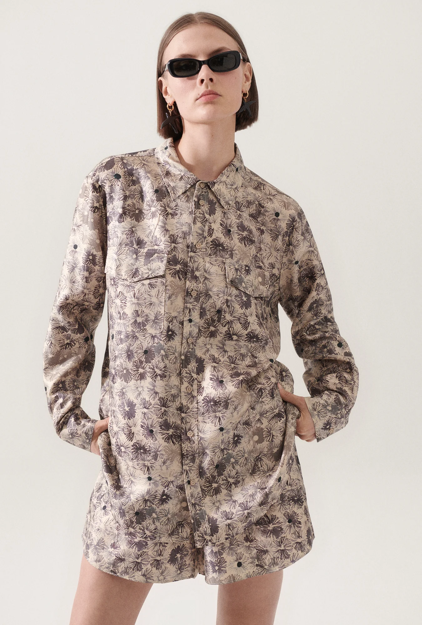 Silk Laundry long sleeve shirt crafted in a 100% silk twill detailed with a button-down front and double utility pockets. Designed to echo an original menswear style for a relaxed fit.